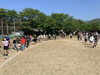 朝マラソンがはじまりました。1~3年生は140メートルトラックを、4~6年生は200メートルトラックを約10分間走ります。毎週火曜日の朝に行われ、2学期末まで続けられます。朝マラソンを通して、持久力を高めていきます。