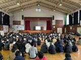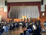 12月23日(火)に、2学期の終業式を行いました。校長先生から、2学期の成長を振り返り、3学期に向けて準備をする冬休みにしてほしいという話がありました。また、生徒指導部の先生からは、規則正しく安全な冬休みを過ごすために大切にしてほしいことについての話がありました。子どもたちは、どちらの話も静かに聞いていました。